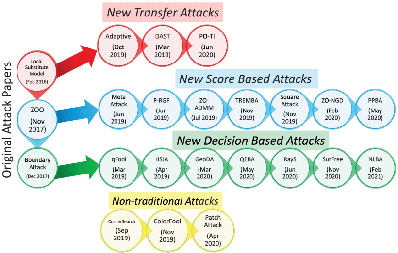 The field of adversarial machine learning has experienced a near exponential growth in the amount of papers being produced since 2018. This massive information output has yet to be properly processed and categorized. In this paper, we seek to help alleviate this problem by systematizing the recent advances in adversarial machine learning black-box attacks since 2019. Our survey summarizes and categorizes 20 recent black-box attacks. We also present a new analysis for understanding the attack success rate with respect to the adversarial model used in each paper. Overall, our paper surveys a wide body of literature to highlight recent attack developments and organizes them into four attack categories: score based attacks, decision based attacks, transfer attacks and non-traditional attacks. Further, we provide a new mathematical framework to show exactly how attack results can fairly be compared.