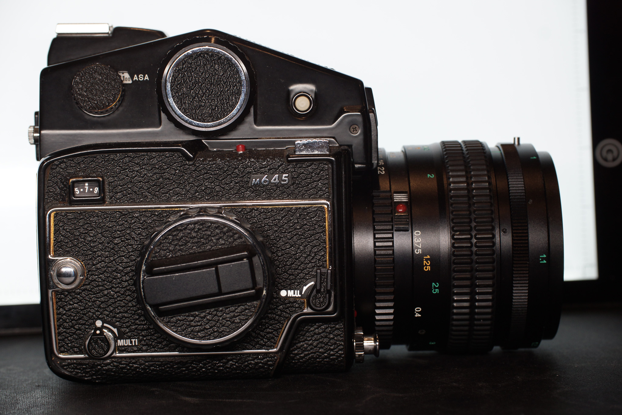 As previously mentioned, at some point I got the idea to try medium format photography, deciding upon the Mamiya 645 as a good budget option. Compared to the Ciroflex, the Mamiya technically takes smaller 6×4.5cm images, however in terms of build it is certainly larger and heavier. The Ciroflex is actually fairly light for its size, weighing in at only 942g with film, a result of it’s simple and thin metal frame. The Mamiya, on the other hand, is far more complex and weighs a hefty 1976g with a lens+film (1420g without a lens). The large viewfinder attachment probably doesn’t help with this.
