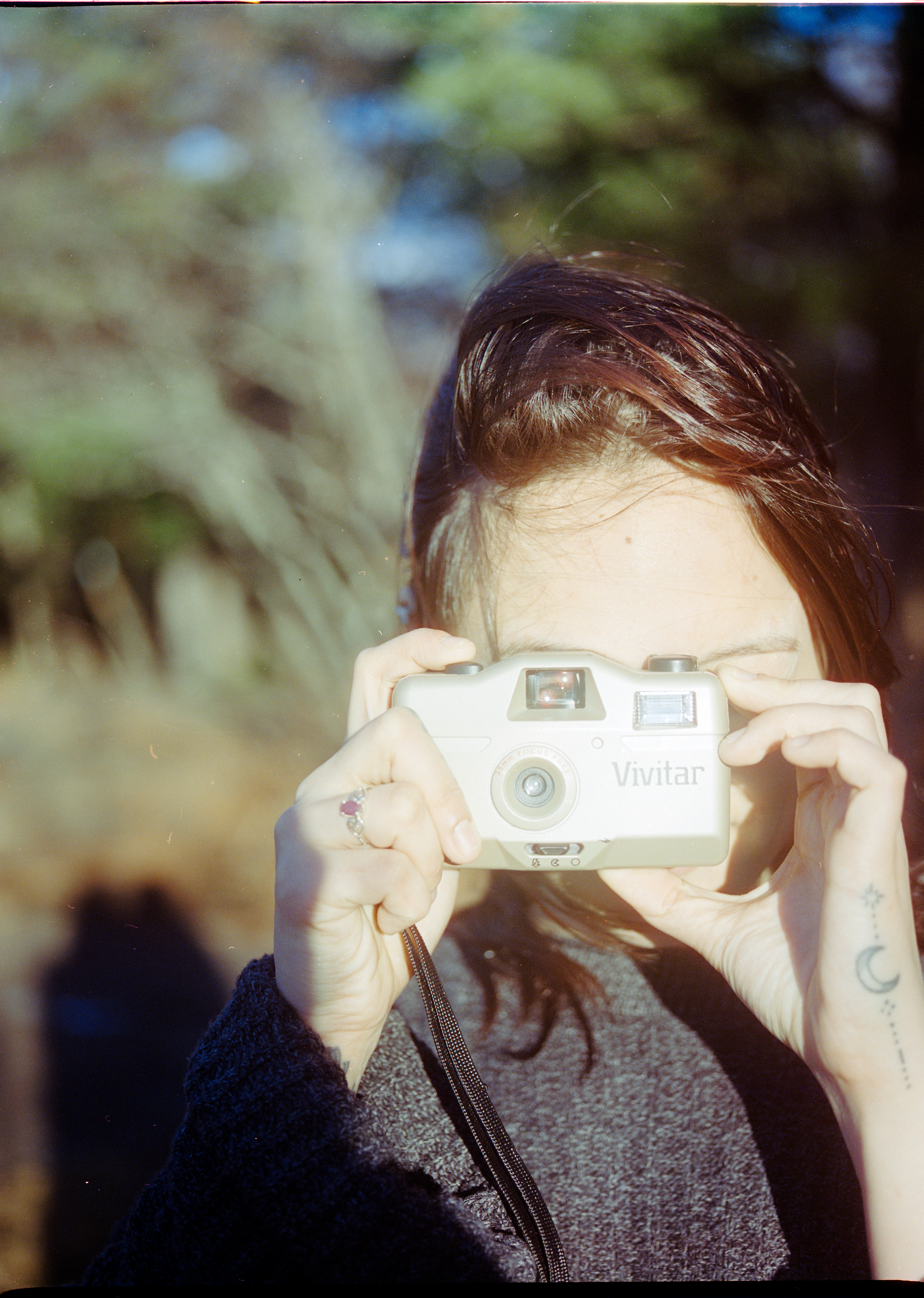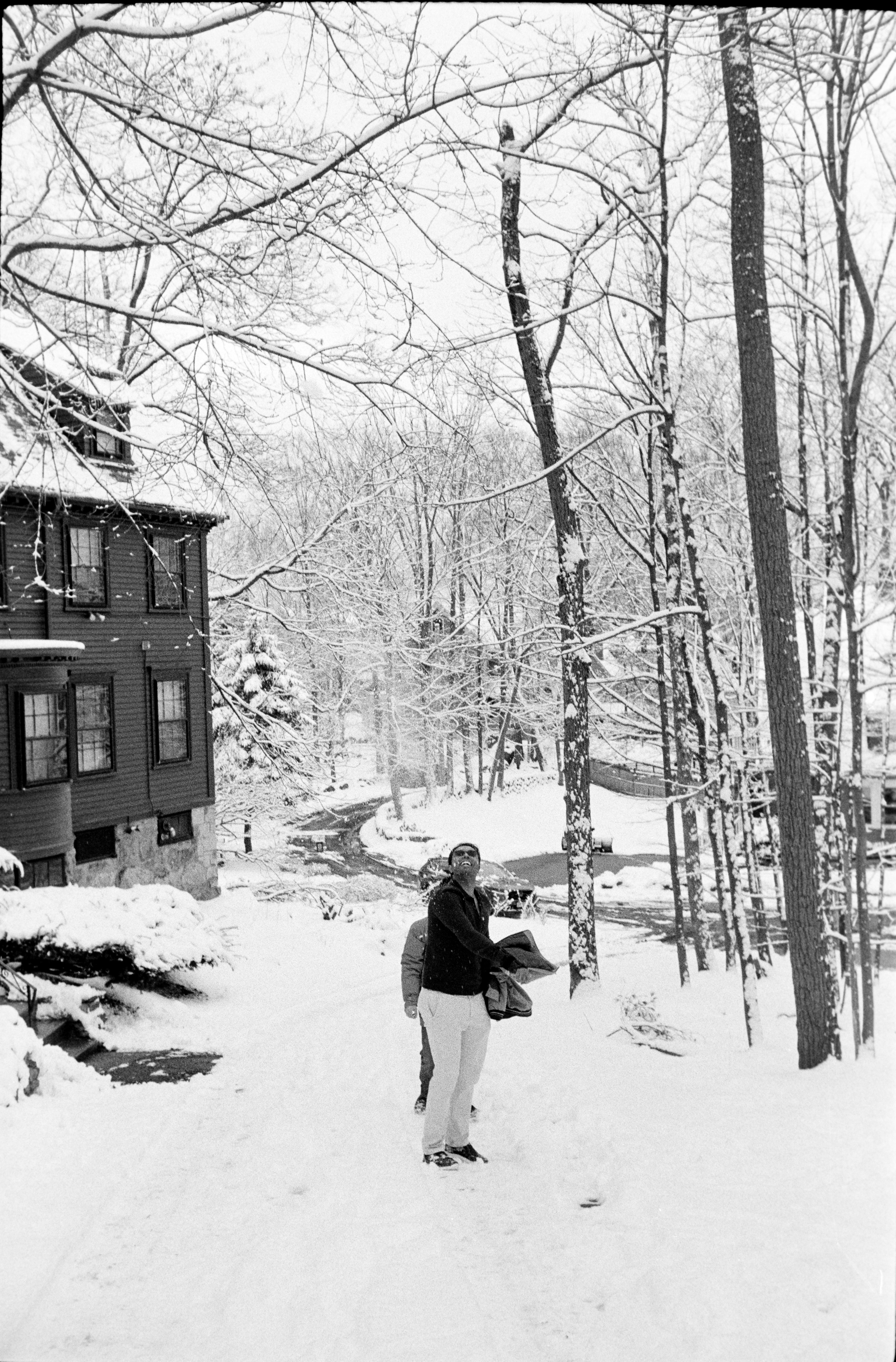 Caption This is still one of my favorite photos and one of many happy mistakes. I had the Minolta on aperture priority while outside in the winter with my mother, who was lit by our home’s flood light. I assumed the exposure would be relatively quick but it ended up being a full 8 second exposure. Part way through the shot I put the camera down, assuming it was done, before swiftly lifting it up again once I realized the shutter was still open. This created the cool effect we see here, making my mom appear ethereal, like she’s made of fog.