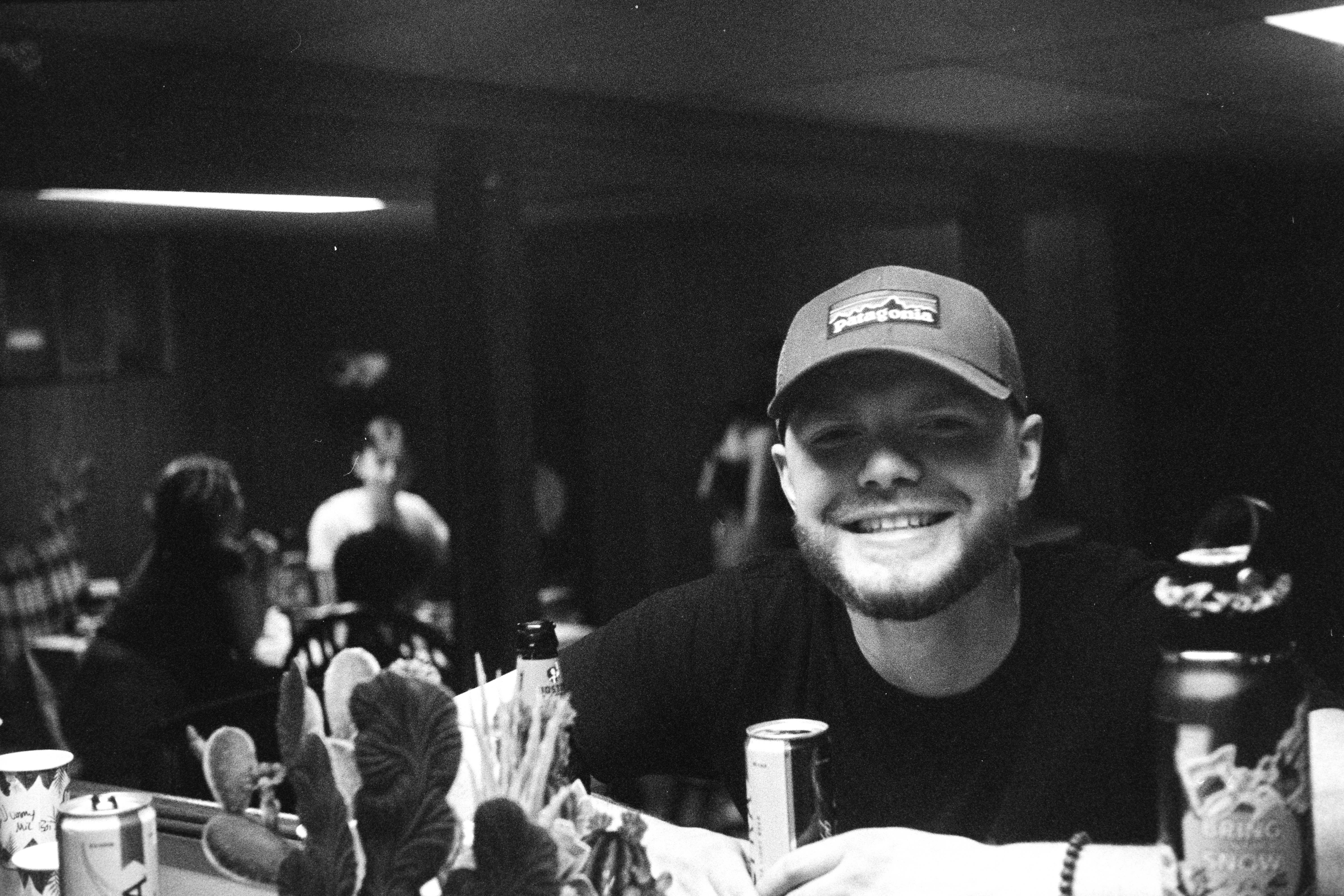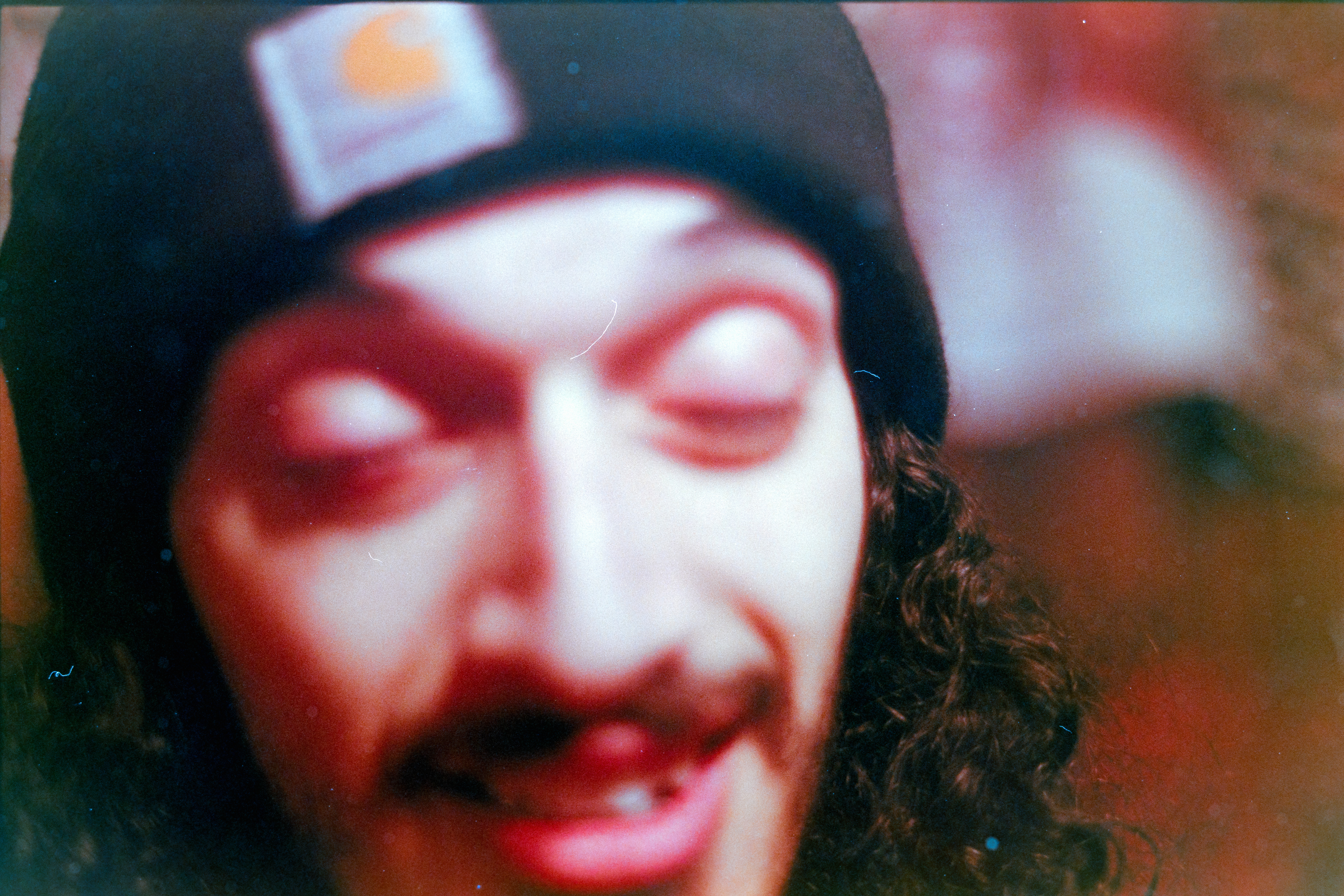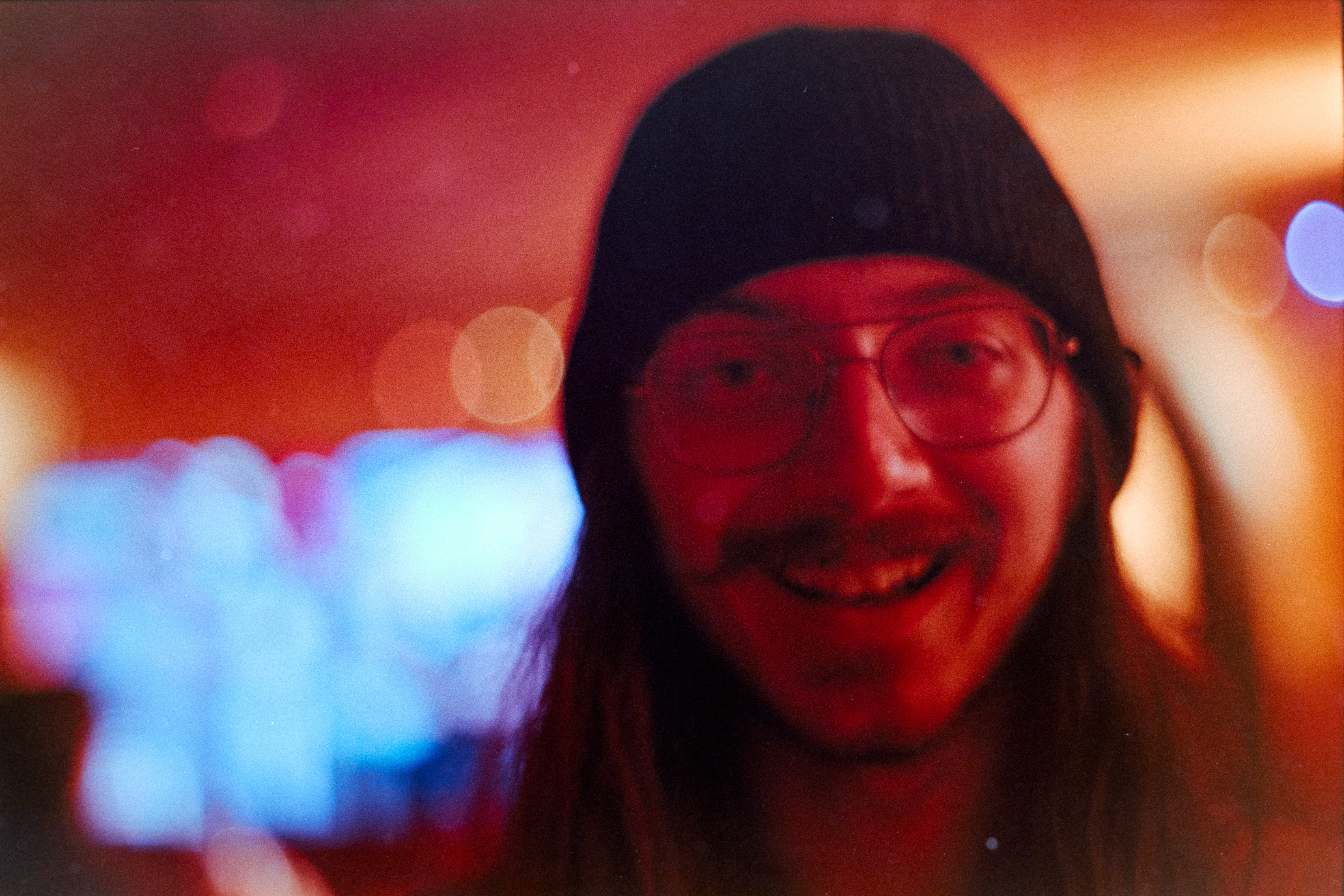 Caption Pictures of Garrett on film circa December 2024. The color photo, taken during a New Years Eve party, is one of my favorites.