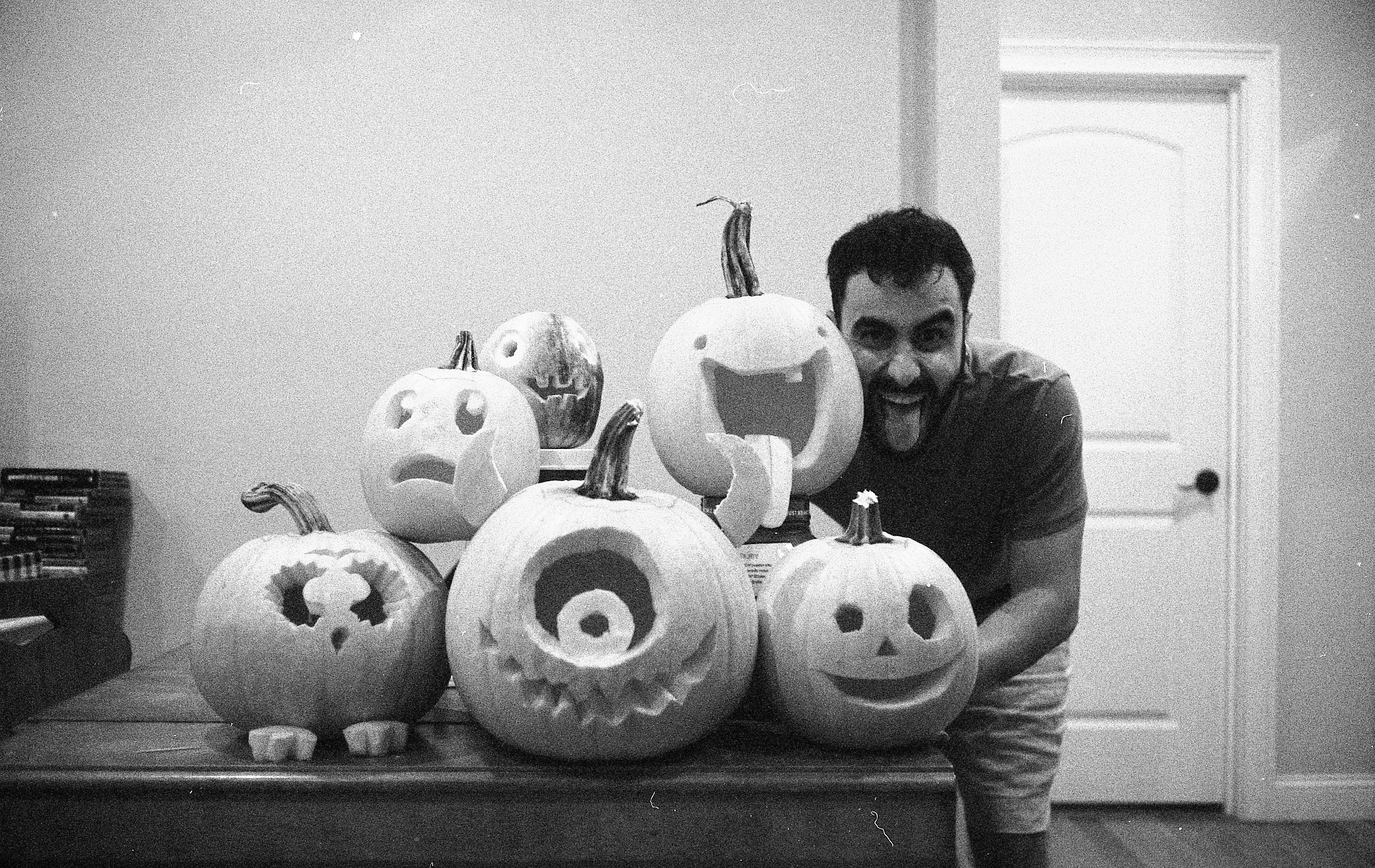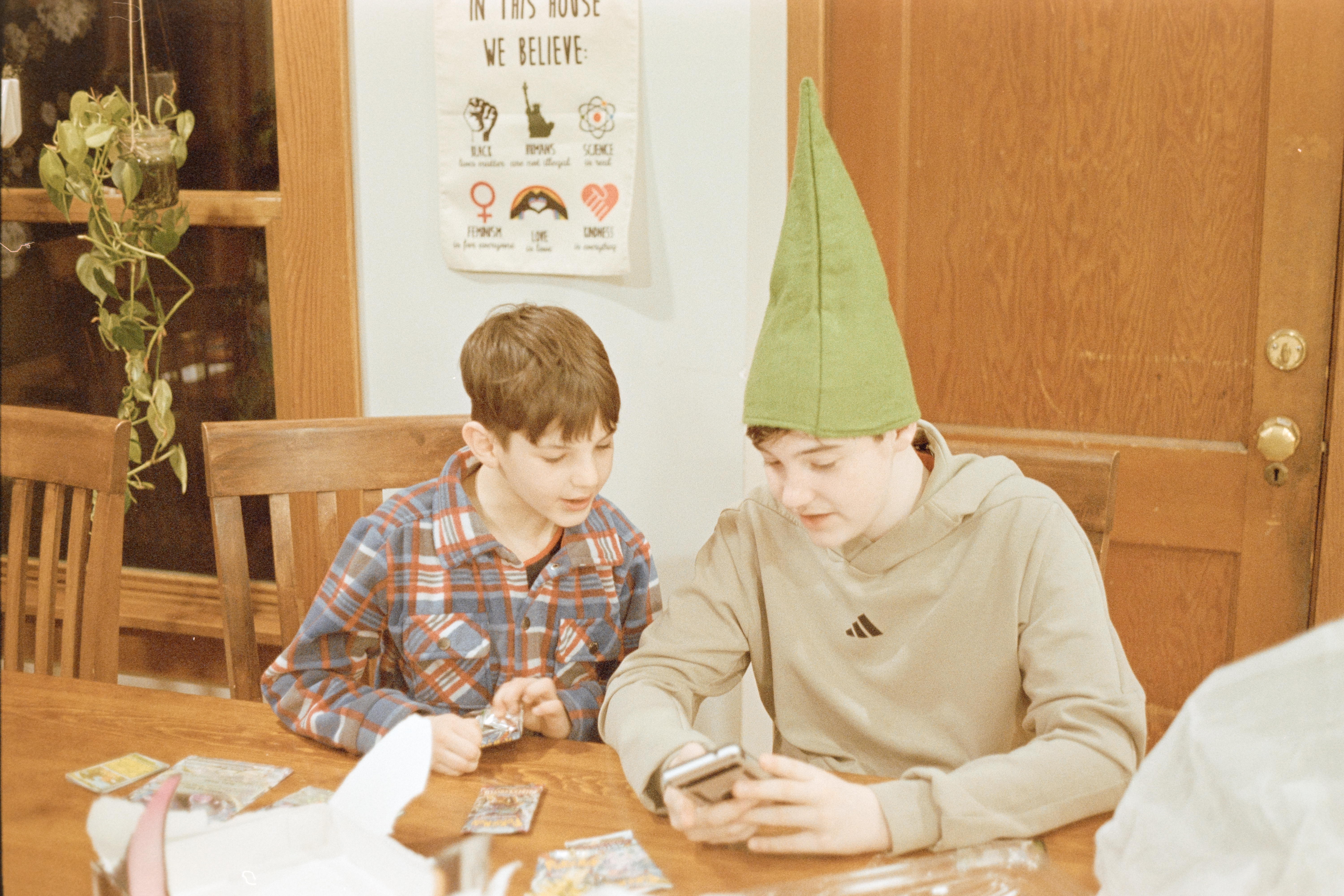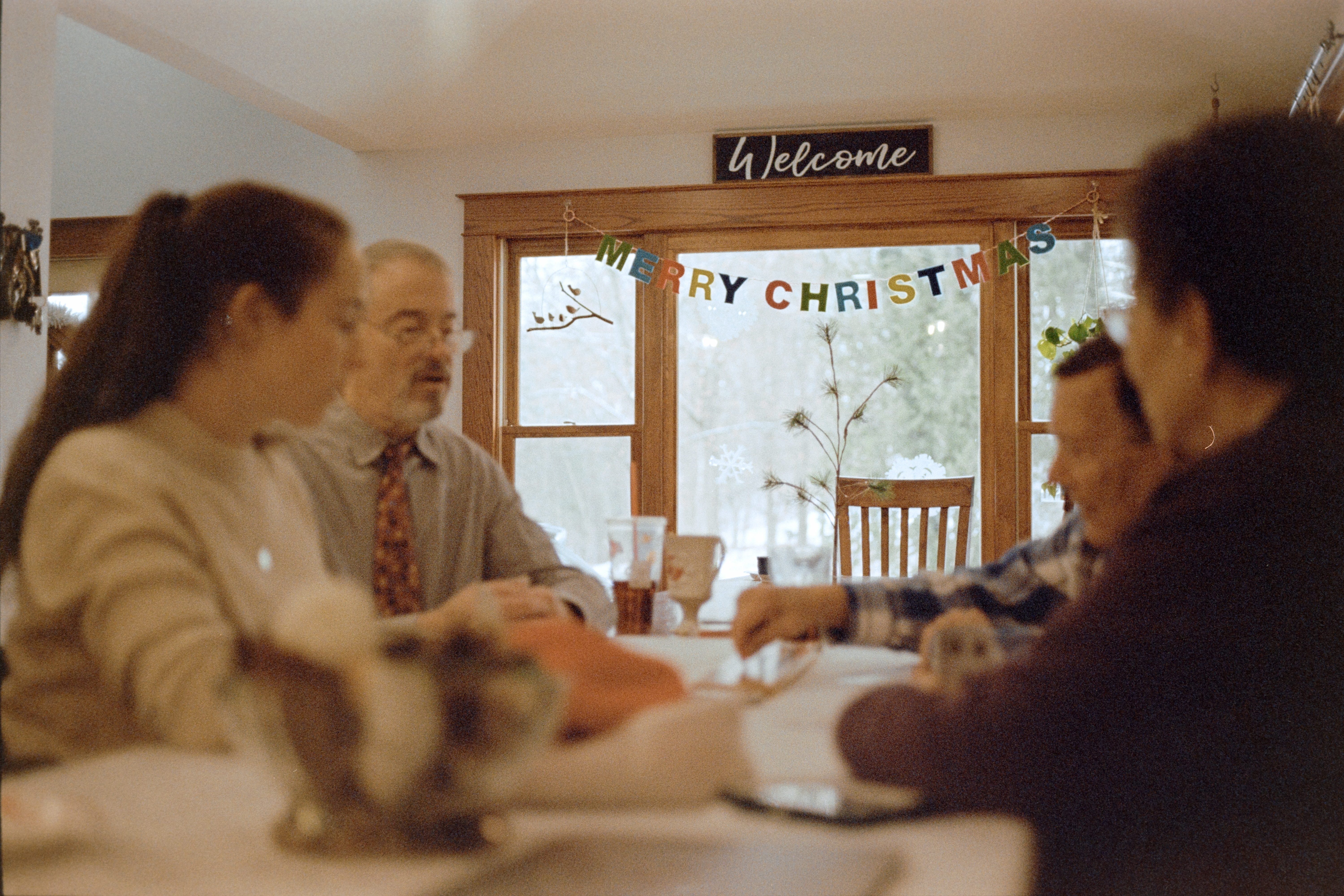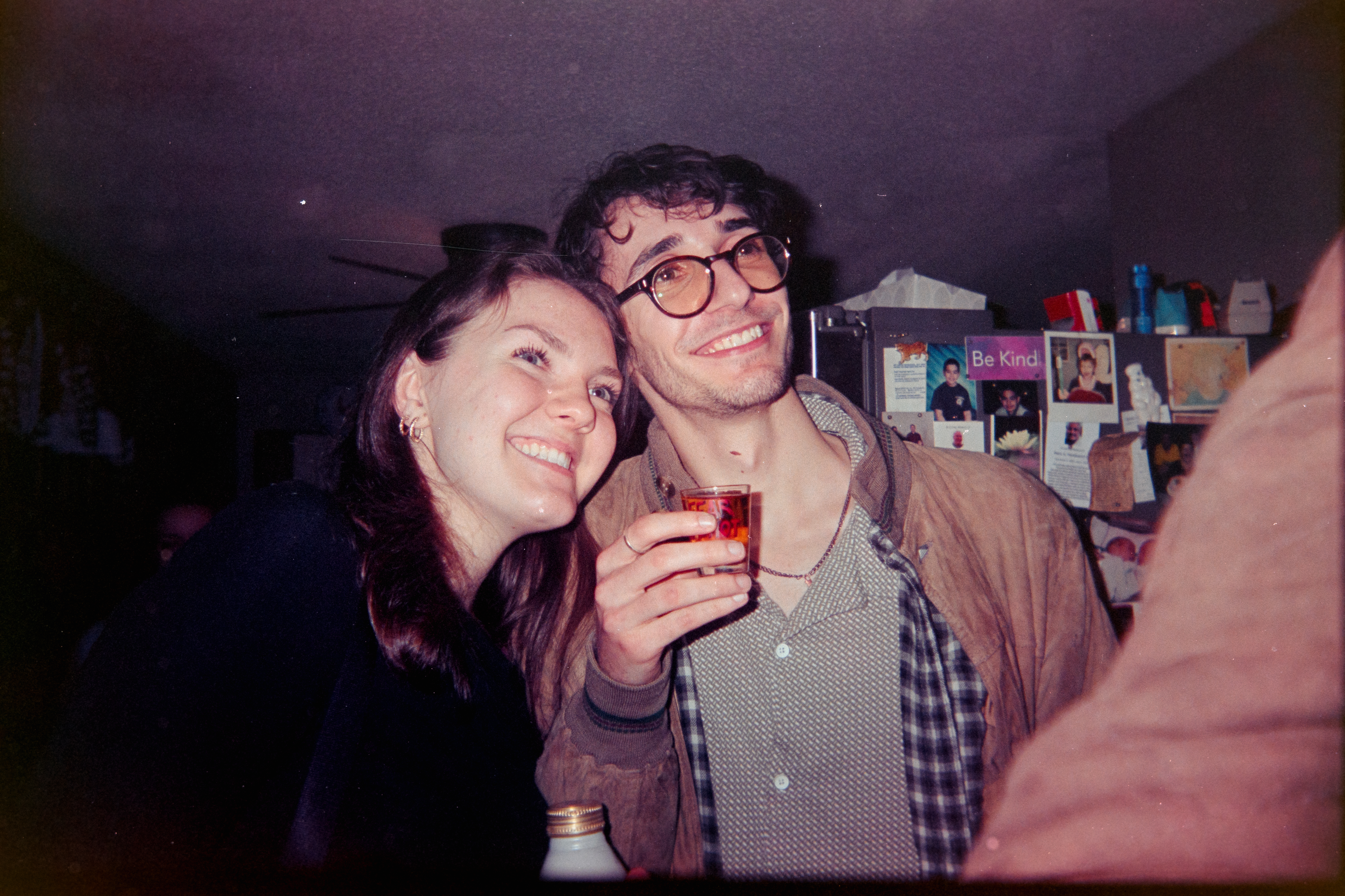 Caption Pictures of Garrett on film circa December 2024. The color photo, taken during a New Years Eve party, is one of my favorites.