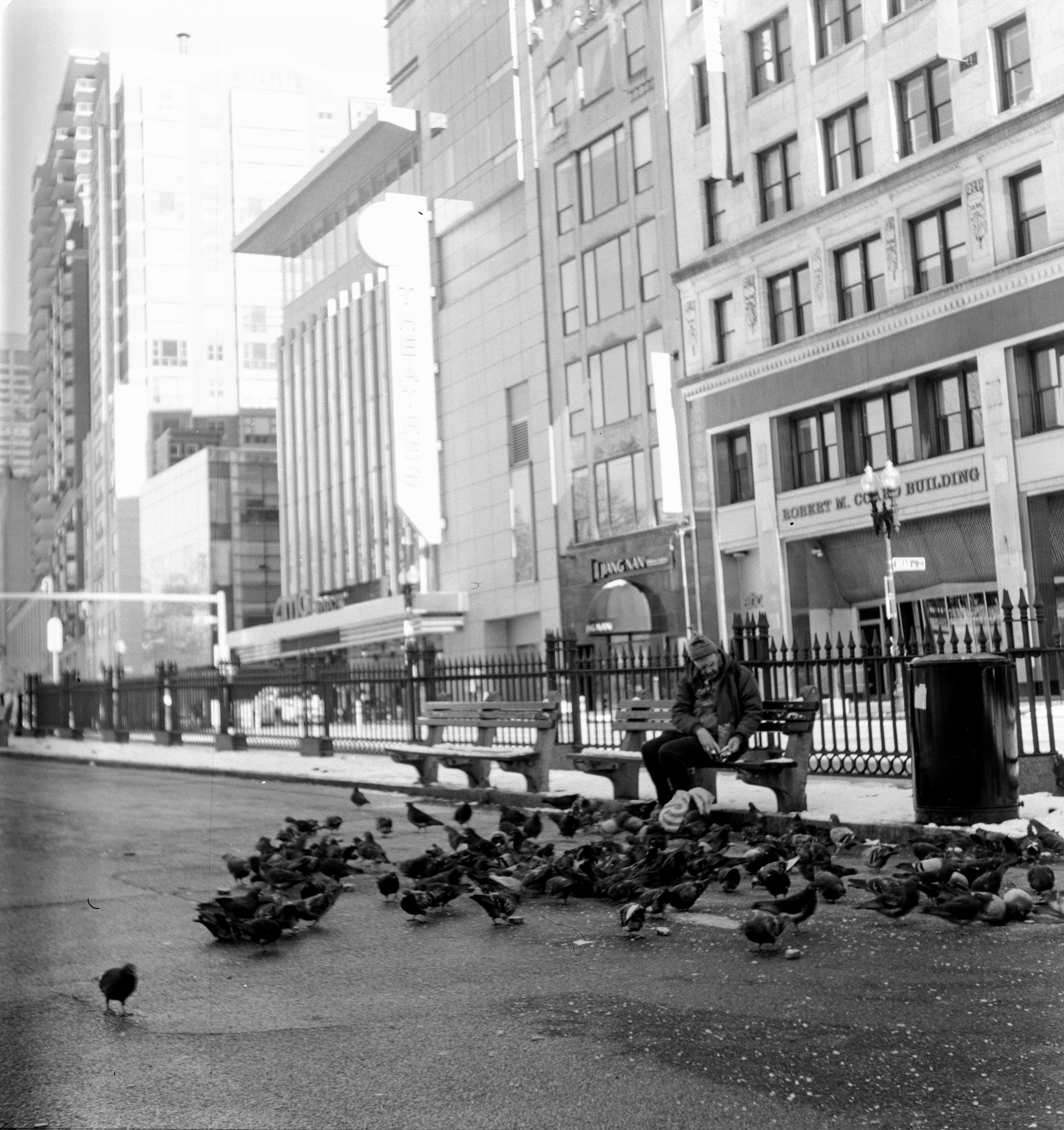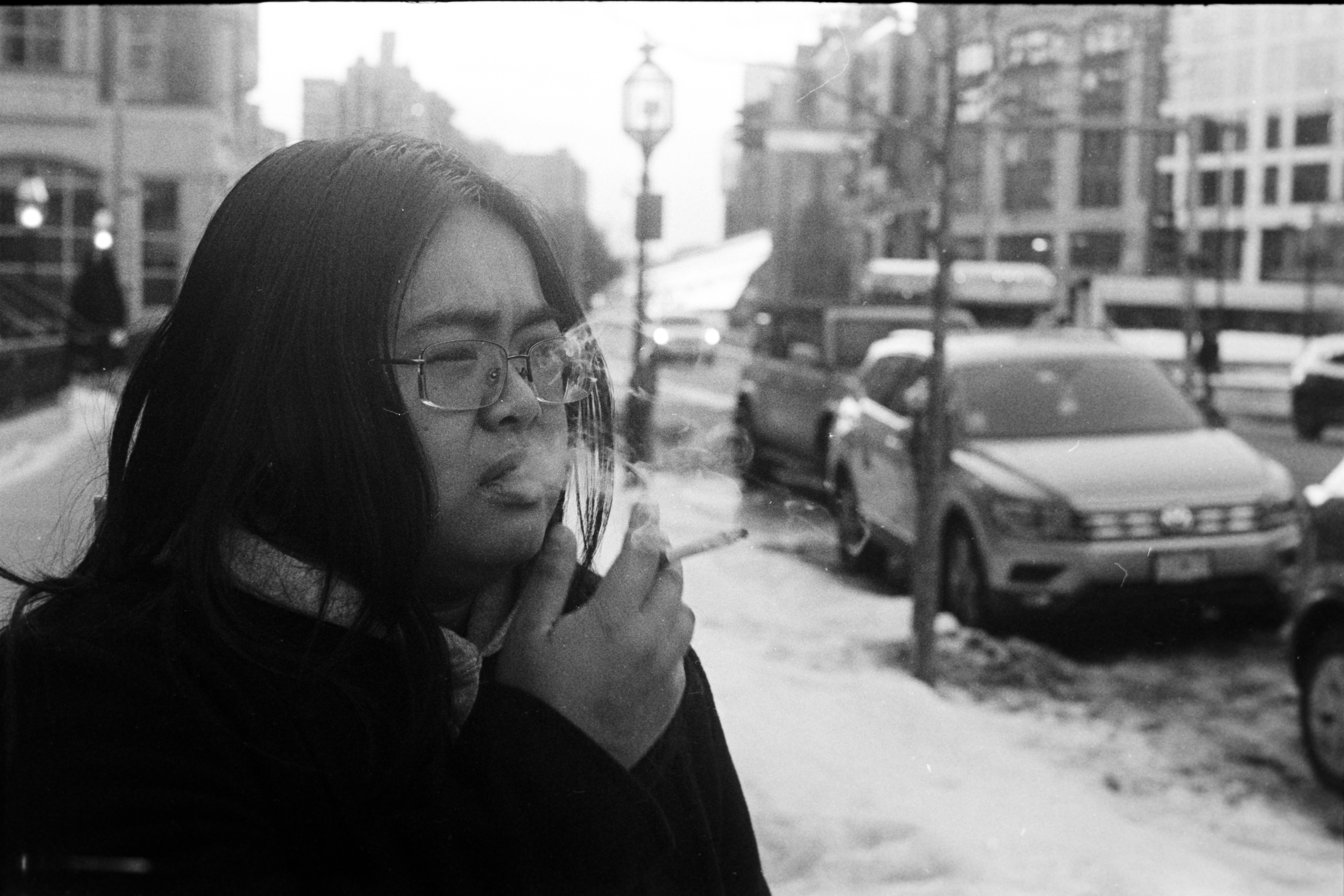 Many of the photos I took at this time were in color which, for some reason, never seemed to satisfy me. I don’t believe this was a fault of the X-700, but rather a shortcoming of artistic vision. For the most part I was just taking pictures of what was happening around me (though can a photographer do anything else?), in a sense documenting my own life, but not necessarily pursuing any particular vision. At some point I attempted to resolve this by drinking from the poison chalice of street photography. In this setting I found the X-700 to struggle for many reasons, mostly outside its mechanics. As an SLR, the X-700 is large, distinct, and loud. This makes it impossible to pocket, requiring you to either hold it constantly or use a neck strap. During the winter, with my jacket, scarf, and long hair I found this to be incredibly uncomfortable and counterproductive. Thus, I began to explore smaller alternatives which we will discuss later.