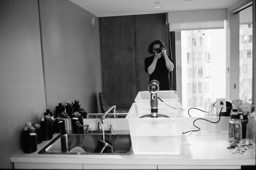 Caption The not-so-dark room setup I used with Jack at work. Janky setups like this are what I love about film, the rules are always bent.